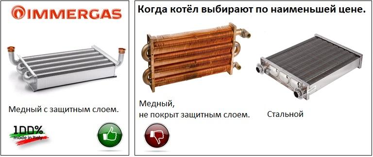 Первичный теплообменник котла от итальянской фирмы Condevo S.p.a. изготовлен из меди и покрыт специальным составом для дополнительной защиты от коррозии. Первичный контур газовых котлов Mini будет служить фактически вечно, при условии, что он заполнен умягченной чистой водой. Нет свинца и олова.