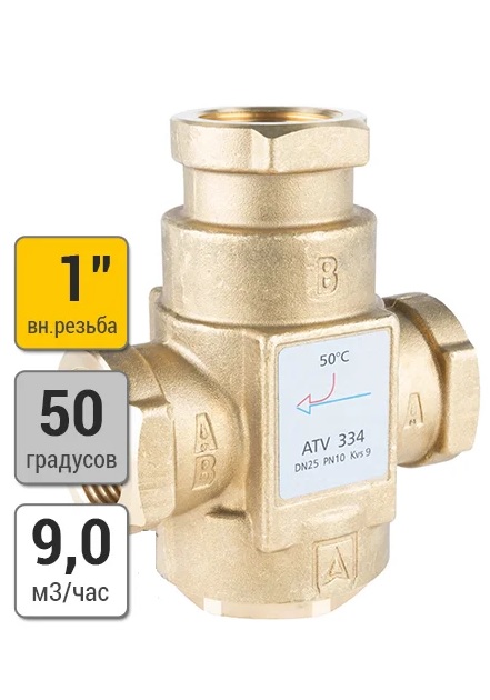Клапан трёхходовой АТV 334 ТК 50°С, ВН 1", Kvs - 9 ( 1633410)