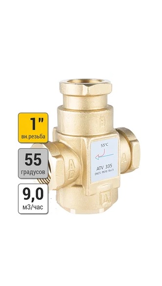 Клапан трёхходовой АТV 335 ТК 55°С, ВН 1", Kvs - 9