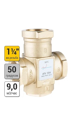 Клапан трёхходовой АТV 554 ТК 50°С, ВН 1 1/4", Kvs - 9