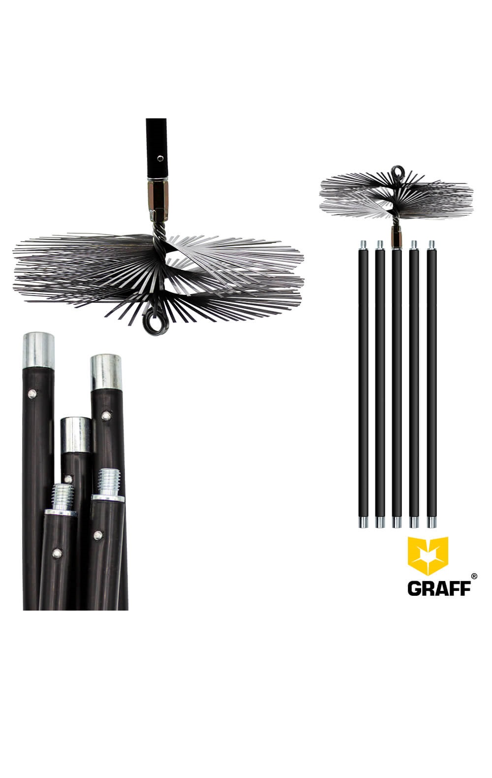 Комплект для чистки дымохода (ерш металлический ф150 в наборе с 5 гибкими стержнями) GRAFF