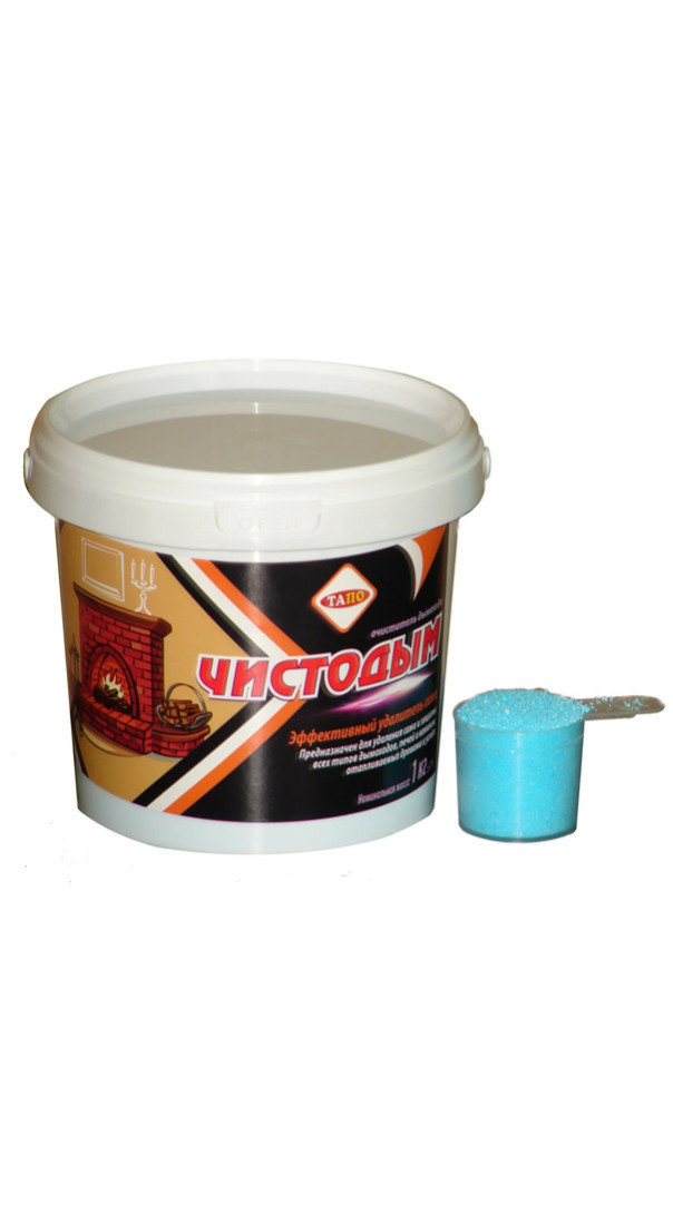 Очиститель дымохода «Чистодым» - порошок, который предназначен для очистки и защиты современных дымоходов, печей и каминов, отапливаемых дровами и углём. Под действием жара данный препарат выделяет специальные элементы, которые поднимаются вверх по дымоходу при помощи тяги, вступают в реакцию с сажей и постепенно разрушают ее, очищая стенки дымохода, а так же покрывают их защитным слоем, который препятствует новому сажеобразованию.
